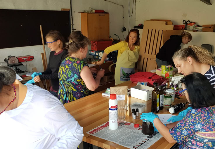 Hilfe bei den offenen Werkstätten, beim Festival, im Garten, beim Design und der Gestaltung des Hauses und Geländes.