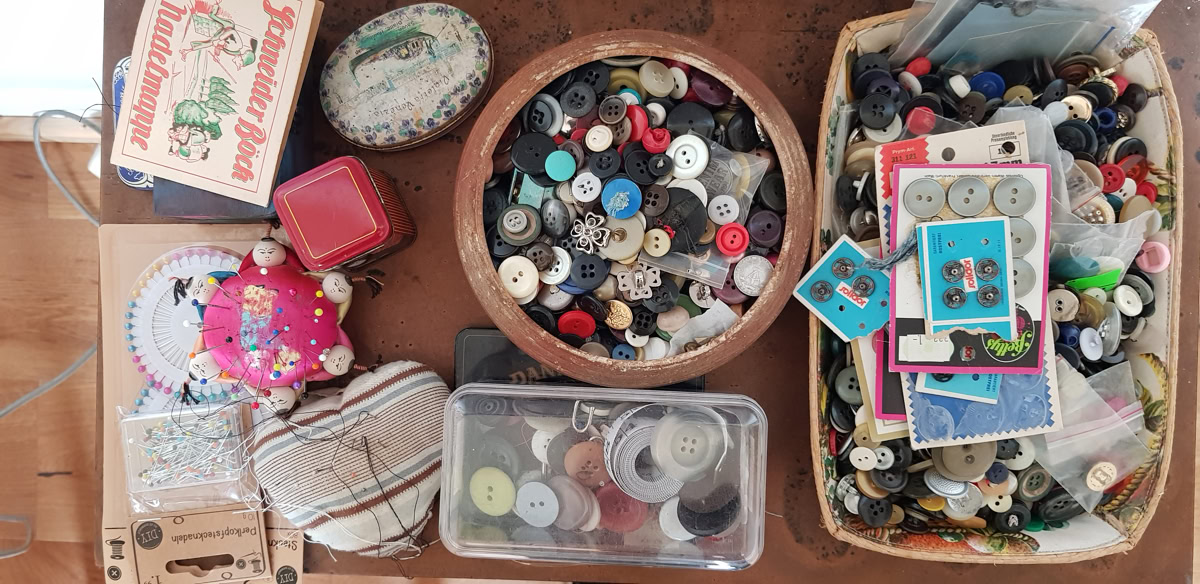 Auch haben wir durch Spenden und den Kleidertausch einiges an Stoffen.